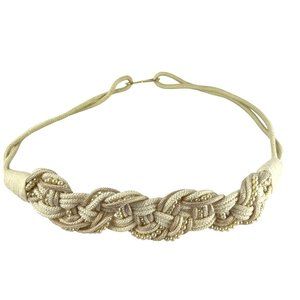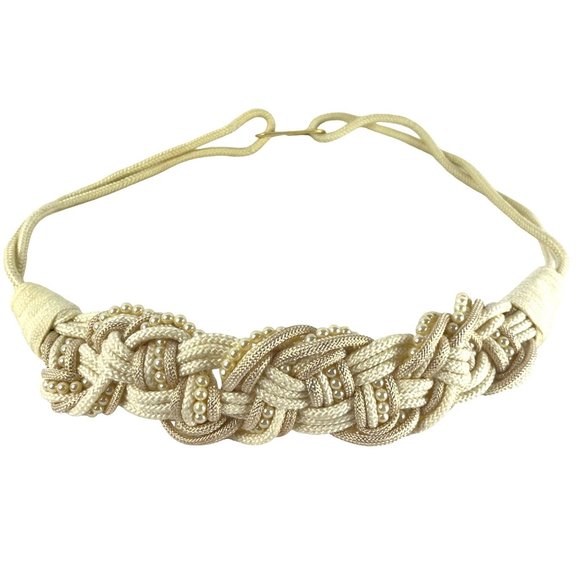 Vintage Cream and Gold Metalic Braided Rope with Faux Pearls Belt, 40"