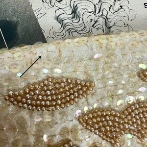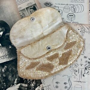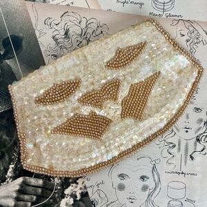 Vintage Cream and Gold Sequined Beaded Evening Dainty Clutch Purse Bag