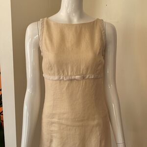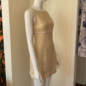 Vintage Cream and Pastel Yellow Mini Linen Dress Size 2