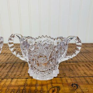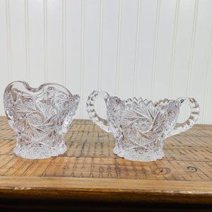 Vintage Cream and Sugar Bowls Pressed Nucut/ Imperial Glass Set of 2