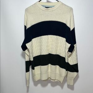 Vintage Cream and Black Striped Crewneck Sweater