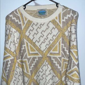 Vintage Cream and Yellow Crewneck Sweater with Geometric Pattern