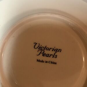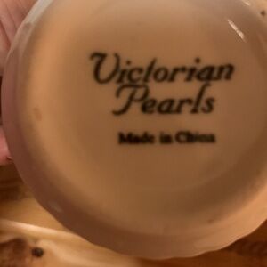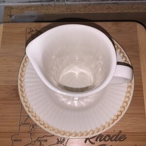 Vintage Creamer & Saucer or Gravy Sauce Set Victorian Pearls Ivory & Tan Neutral