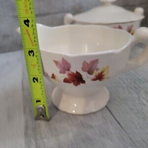 Vintage Creamer & Sugar Bowl Set With Autumn Leaf Design