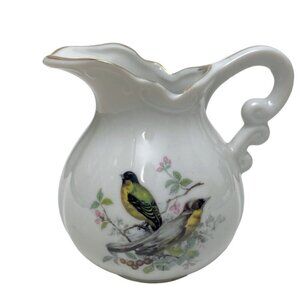 Vintage Creamer and Saucer Yellow Finch Birds Design Ceramic Set Mini Pitcher