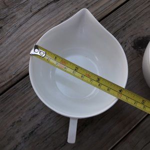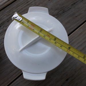 Vintage Creamer and Sugar Bowl RV Camping Dishes. 3 Piece Melmac Melamine White or Ivory Portable Plastic or Acrylic Cream and Sugar Bowl with Lid. Wonderful classic vintage set great for camping or boating. Portable travel coffee serving set or measuring cup and small serving bowl with lid.
