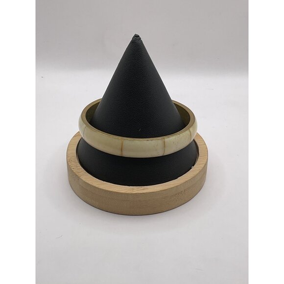 Vintage Creamy Beige Bangle Bracelet Round Resin Material Subtle Marbled Pattern