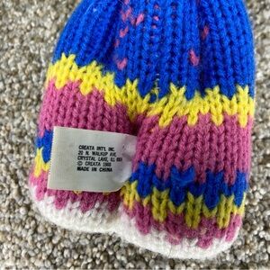 Charming handmade knit doll. Features vibrant yellow hair. Dressed in a colorful knit outfit. Plush, soft. Amazing preowned condition. See photos.