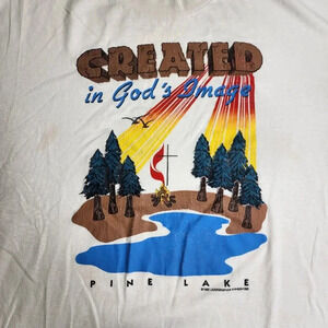 Vintage Created In God's image Pine Lake Religious Shirt