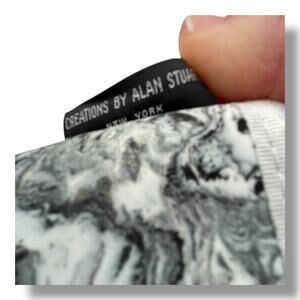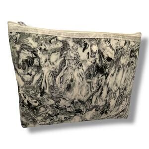 Vintage Creations by Alan Stuart New York Cosmetic Makeup Bag Black White Marble Abstract Print (very eye catching!), Storage Pouch 90s Toiletry Travel ~9.5"W x 7”H x .5"D, Holiday, Vacation, Unique, Artisan