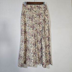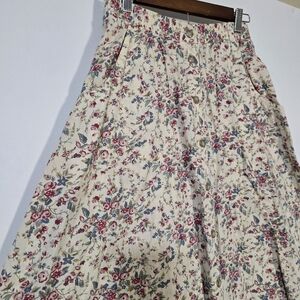 Vintage Creme Floral Buttondown A-Line Midi Skirt