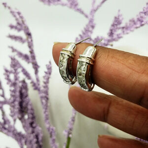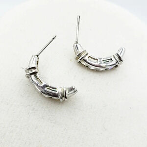 Vintage Crescent Earrings | Silver tone w/ Baguettes