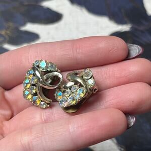 Vintage Crescent Silver Tone Sparkling AB Aurora Borealis Earrings