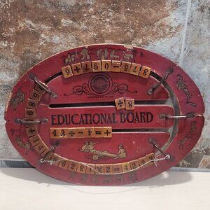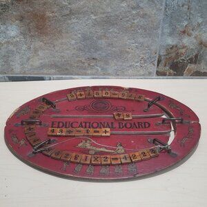 Vintage Cress Educational Board Reversible Red Oval Educational Toy Two Sided Math Reading Educational Wooden Board