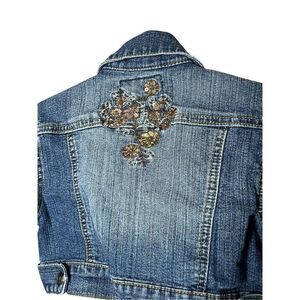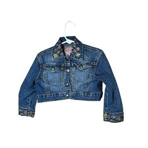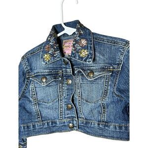 Vintage Crest Jeans Y2K girls Cropped Embroidered Denim Jacket Size 4. Floral embroidery and beading throughout. Very good condition.