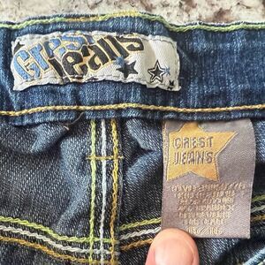 Vintage Crest Wide Leg Flared Denim Graphic Blue Jeans Size 16
