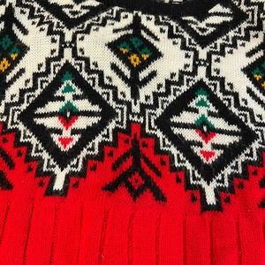 Vintage Crewneck Red Black Nordic Fair Isle Long Sleeve Ski Winter Sweater Larg