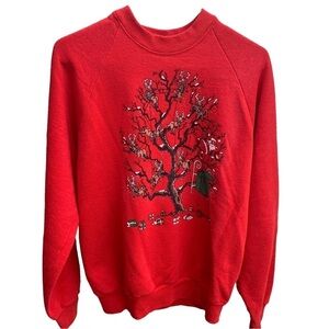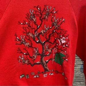 Vintage Crewneck Sweatshirt Holiday Christmas Santa Claus Sled Tree 1992