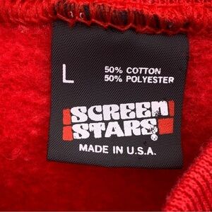 Screen Stars Tag, Made in USA. Size L. Would fit a little small, more like Medium.