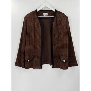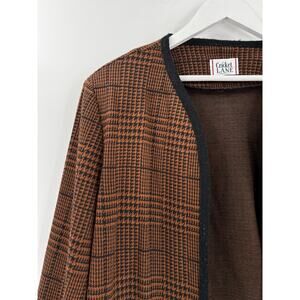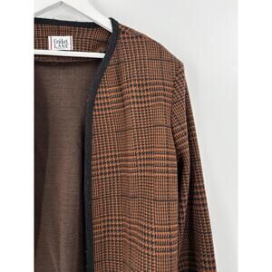 Vintage Cricket Lane Cardigan Sweater Womens 14 Brown Black Houndstooth Open