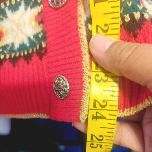 Vintage Cricket Lane Red Cardigan Sweater With Embroidered Pattern Medium