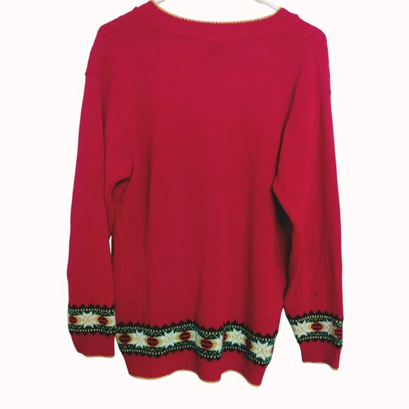 Vintage Cricket Lane Red Cardigan Sweater With Embroidered Pattern Medium. Condition is preowned. This vintage Cricket Lane cardigan exudes charm with its rich red hue and intricate embroidered pattern. (FC13)