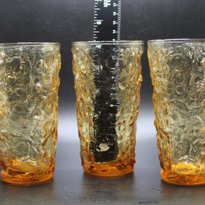 This vintage pitcher and three glasses are made of crinkled amber glass by Anchor Hocking. The pitcher and glasses are in fantastic vintage condition. The glasses are 5 inches tall, and the pitcher is 7.75 inches wide and 9 inches tall. This set is perfect for entertaining.