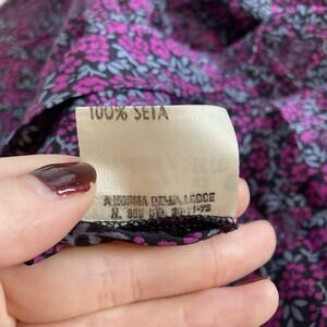 Vintage Cristallo Womens Purple Ditsy Floral Silk Blouse Size 42/10 Boho Italian