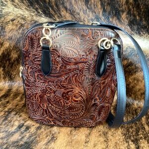Vintage Cristian Genuine Leather Tooled Handbag Made In Italy