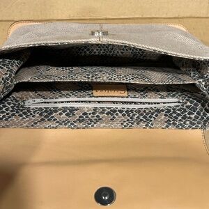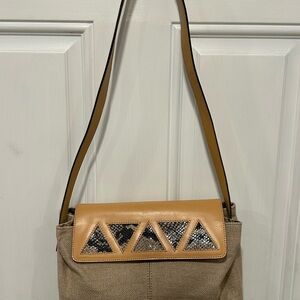 Vintage Cristian Italy Shoulder Bag Linen & Leather Snake Skin Accents