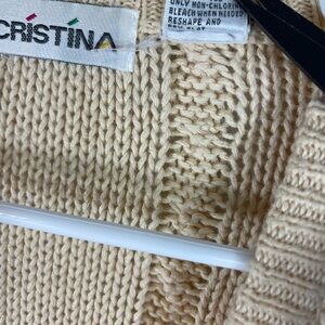 Vintage Cristina Size Large Cream Cable Knit Cardigan Sweater V Neck Gold button