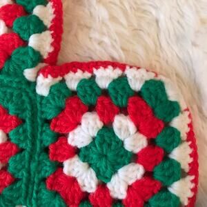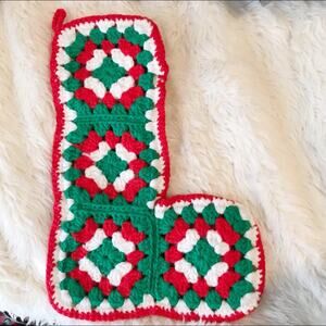 Vintage Crochet Afghan Granny Square Knit Ugly Christmas Stocking handmade 70s