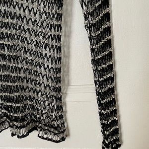 black cardigan. Long sleeve. Bling bling. It’s stretchy, maybe extra small, small.