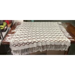 Vintage Crochet Bedspread Or Tablecloth - 42x40”. In good used condition. It does have some stains on it mostly near the edges.