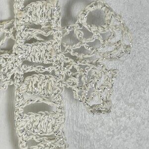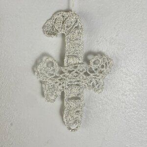 Vintage Crochet Candy Cane Ornament Hand Made White Thread Sparkly Christmas
