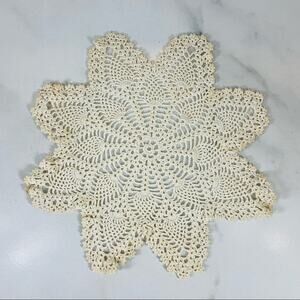 Vintage Crochet Doily Cream Star Shaped 11”