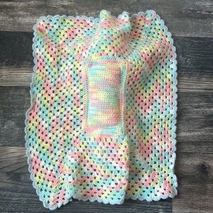 Charming vintage doll in a crochet outfit. Comes with a pastel crochet blanket attached. Amazing condition!