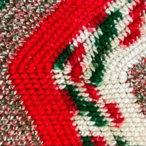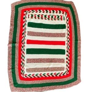 Vintage Crochet Handmade Blanket Throw Christmas Holiday Red Green White