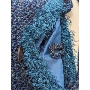 Vintage Crochet Knitted Blue Shoulder Bag Handmade Button One Strap