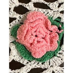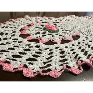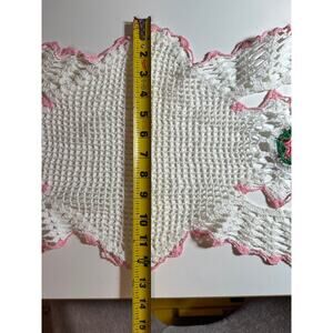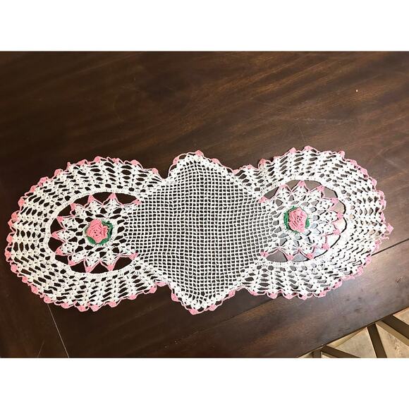 Vintage Crochet Lace Table Runner Raised Variegated Pink Irish Roses handmade