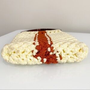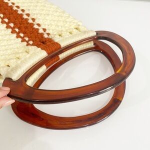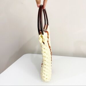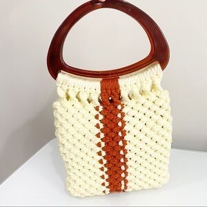 Vintage Crochet Lucite Handle Bag Handmade Cream Cinnamon Brown