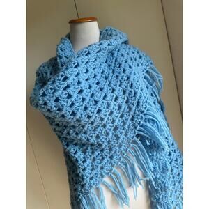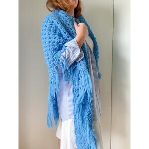 Vintage Crochet Shawl Wrap Baby Blue Accessories Boho Indie Vibes