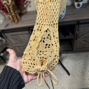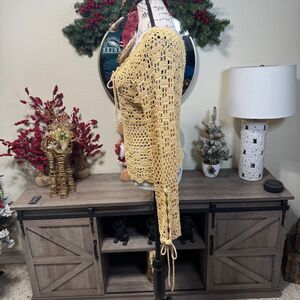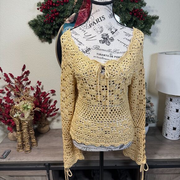 Vintage Crochet Tie Front Sweater Size M Bell Sleeve Y2k Boho Indie Festival