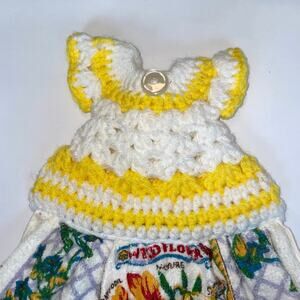 Vintage Crochet Top Hanging Kitchen towel dress shape Grandmacore Cottagecore