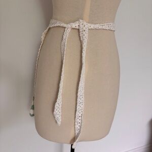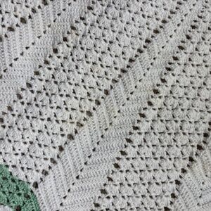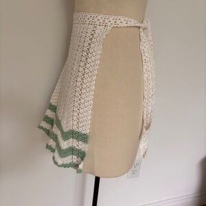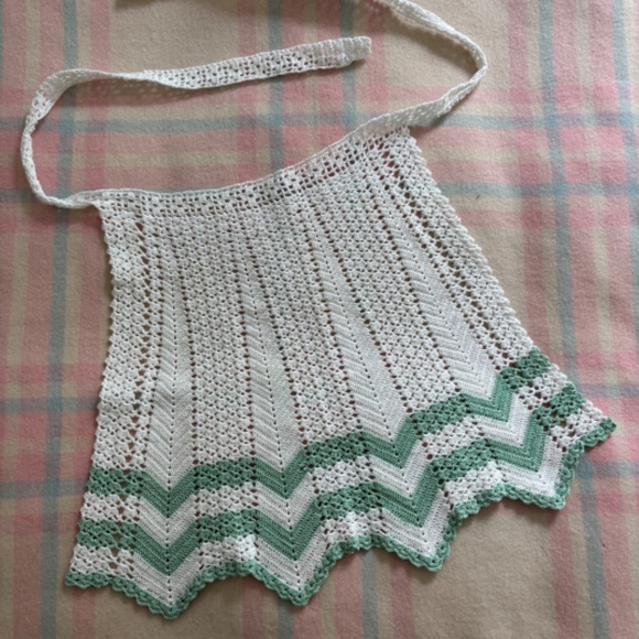 Vintage Crochet cream and green Chevron patterned Apron. 1950s apron hand made crochet white & green stripes for small petite woman or a child, pretty country kitchen apron Shabby Chic cottage coreVintage apron feminine green and white crochet for a small woman or kids with tie back waist - kitchen apron in green and natural white, very cute and lovely, this pretty apron is small, it is made for a petite woman or a large child,
