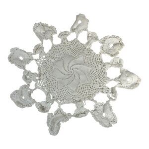 Vintage Crocheted Doilie Fancy 3d Flower SwirlEdge Design 11”x11” Centerpiece