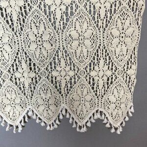 Vintage Crocheted Lace Curtain Tassels Boho Hippie Home Decor Rod Pocket White