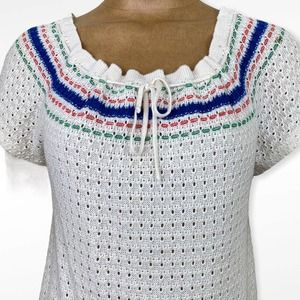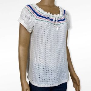 Vintage Crocheted Peasant Blouse Short Sleeve Knit Top