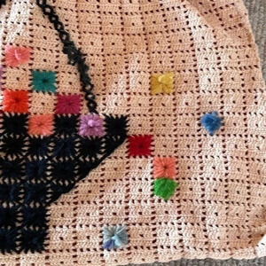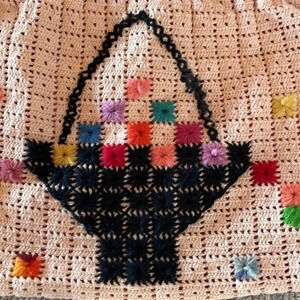 Vintage Crocheted Purse with Wooden Handle