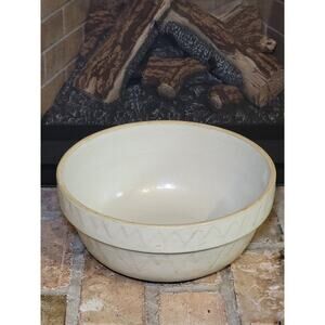 Vintage Crock Bowl Sawtooth Milk Pan Stoneware Mixing Shoulder Bowl 12-3/4"